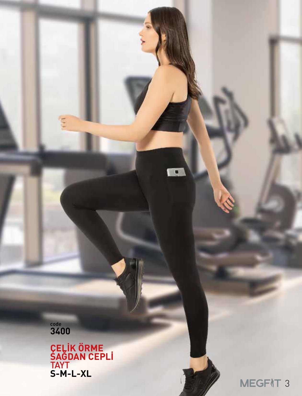 Megfit 3400 Çelik Örme Sağdan Cepli Tayt
